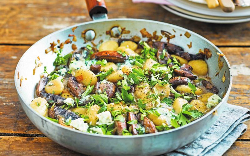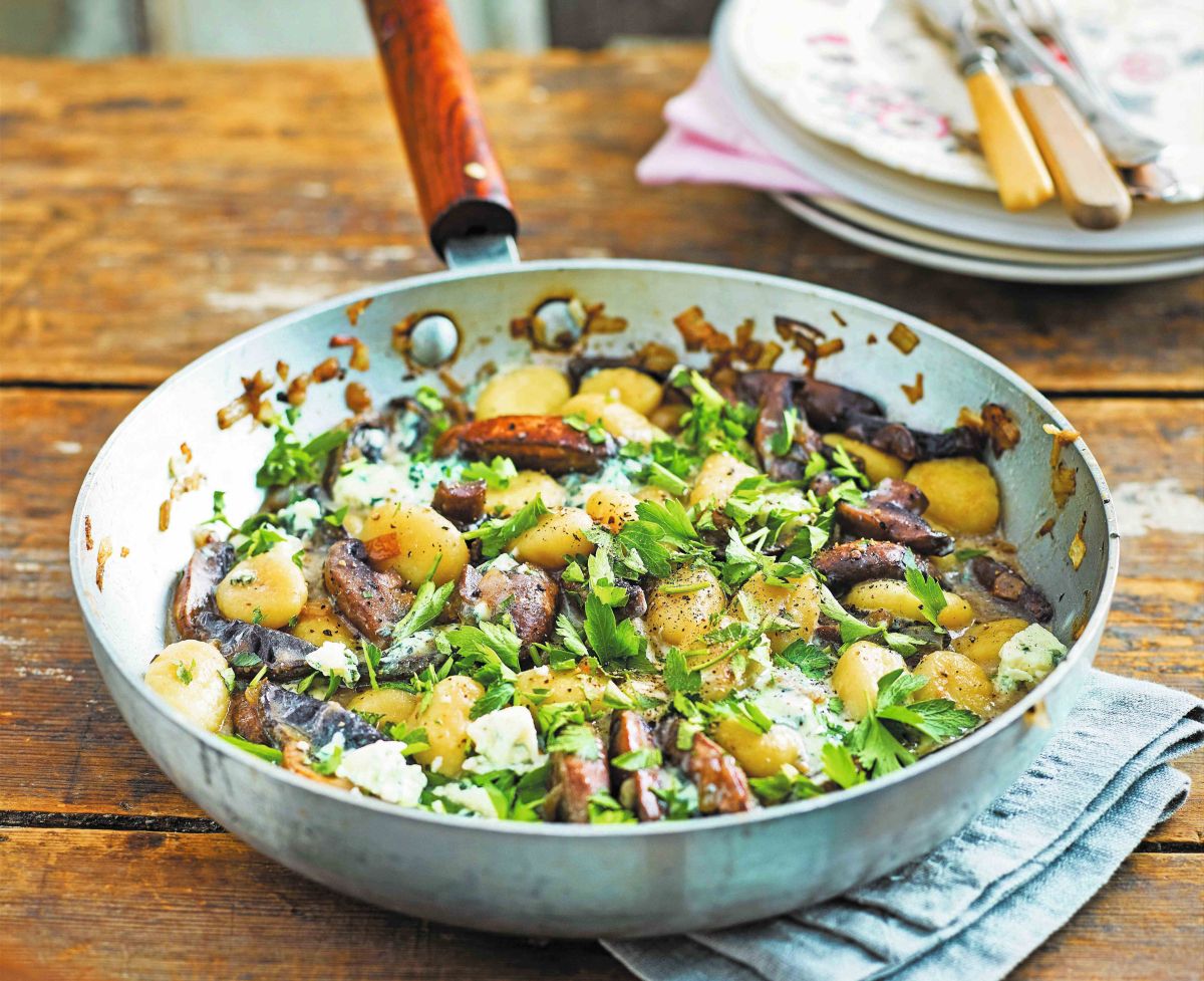 Ko potrebujemo hitro in nasitno kosilo, pridejo na vrsto preproste preverjene kombinacije. Mehki njoki, šampinjoni in topljen modri sir ustvarijo poln obrok, ki se bo hitro uvrstil med najbolj priljubljene.