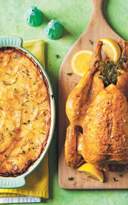 Pečen piščanec in dofineški krompir s parmezanom in timijanom